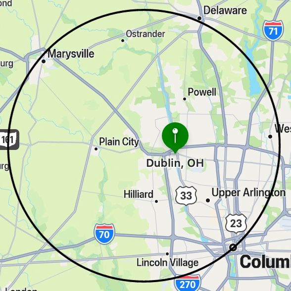 If you live within the circled area, home visits are an option for you! If you live outside of this radius, treatment can be provided at Sensory Savvy Kids in Hilliard, OH for a small additional fee.